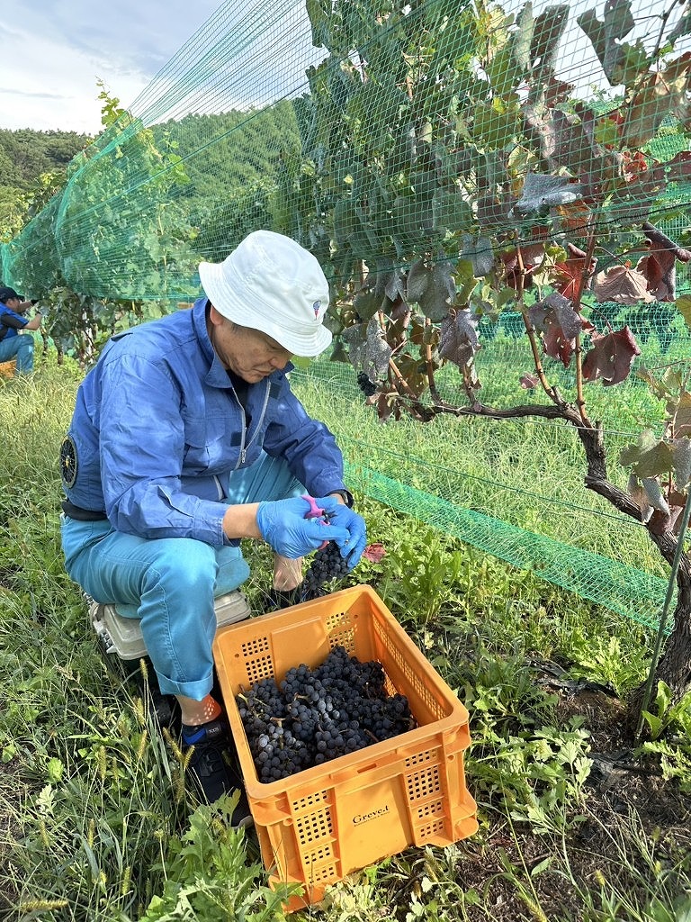 長野県小諸市。浅間山の麓に広がるこの地で、私たちはワイン用の葡萄と水稲を生産しています。標高が高く、昼夜の寒暖差が大きいこの気候は、果実と穀物に深い味わいをもたらします。